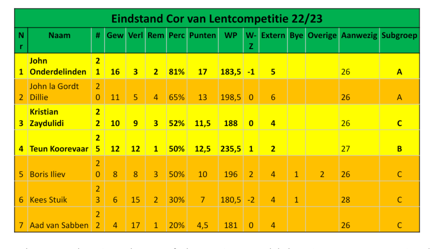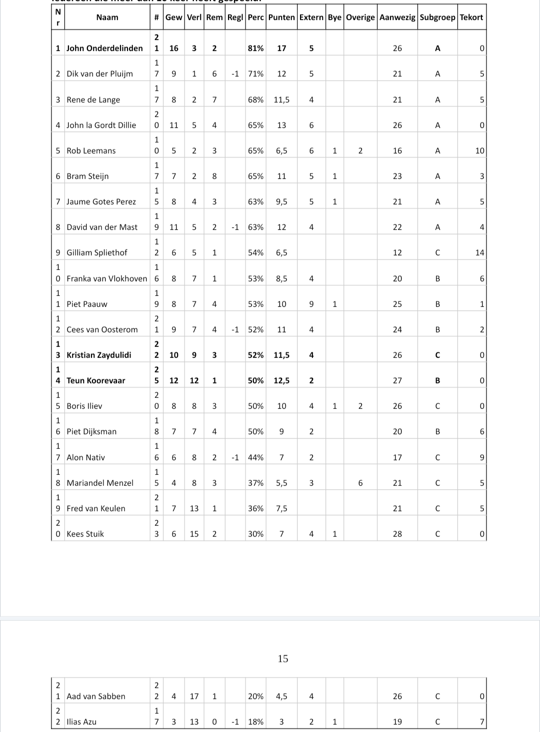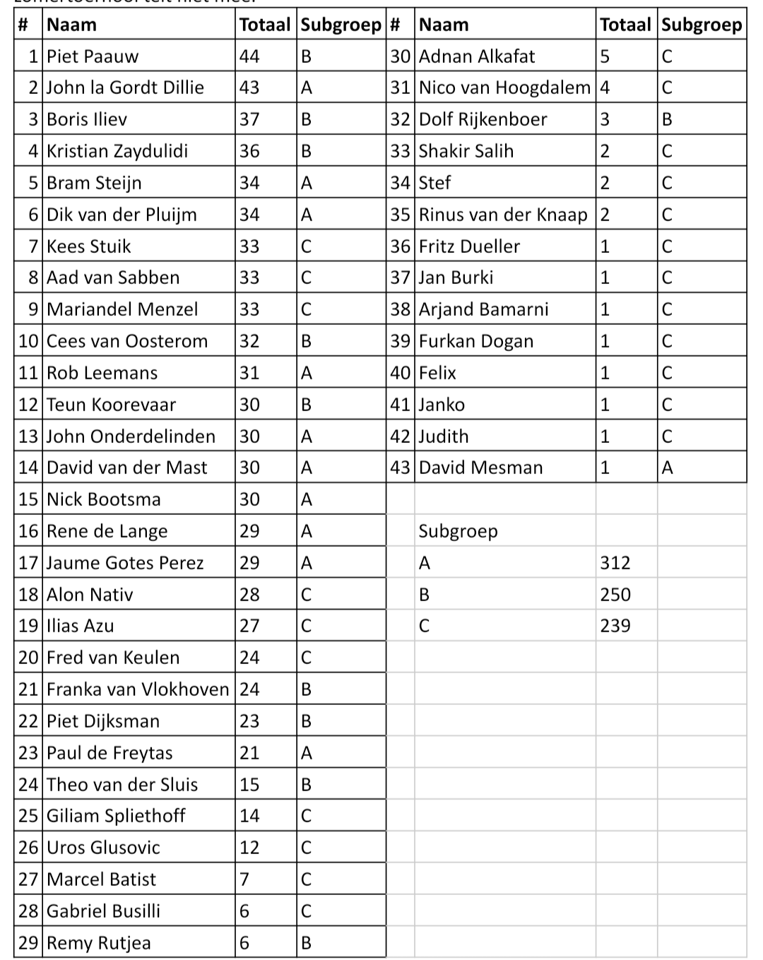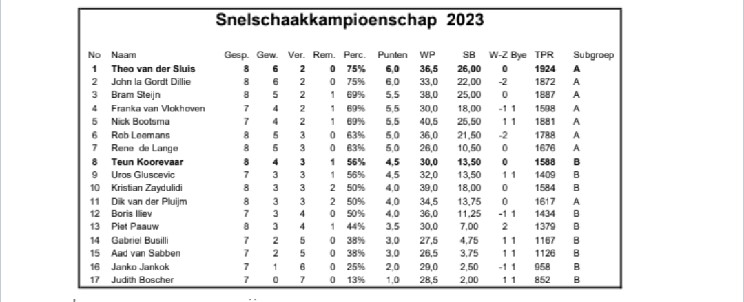 De uitslagen zijn te vinden in onderstaande bestanden.