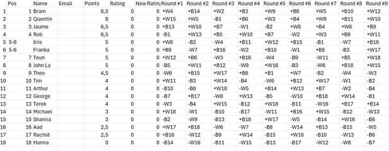Wedstrijd winst is één, remise een half en verlies nul punten.